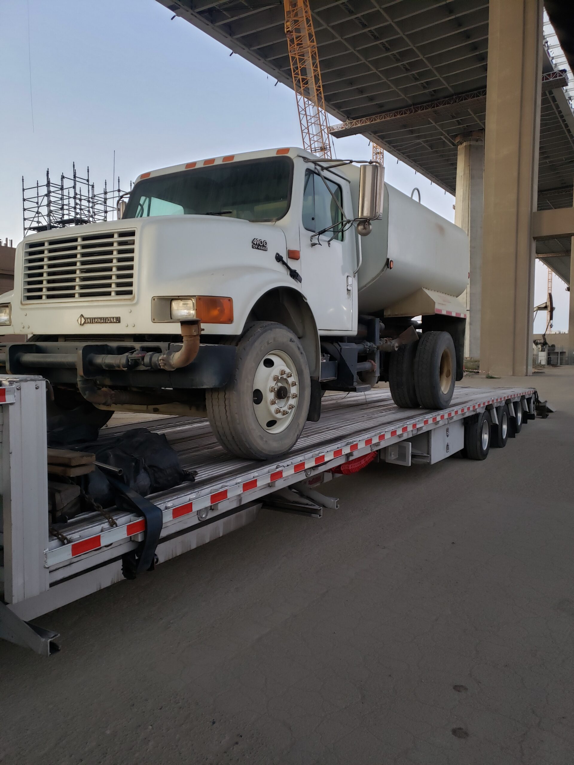 International 4900 water tank truck prepared for transport