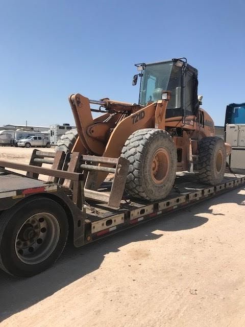 CASE 721D Tractor loaded on a lowboy trailer for transport