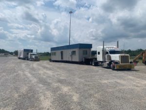 Semi Truck Hauling Mobile Office Trailer