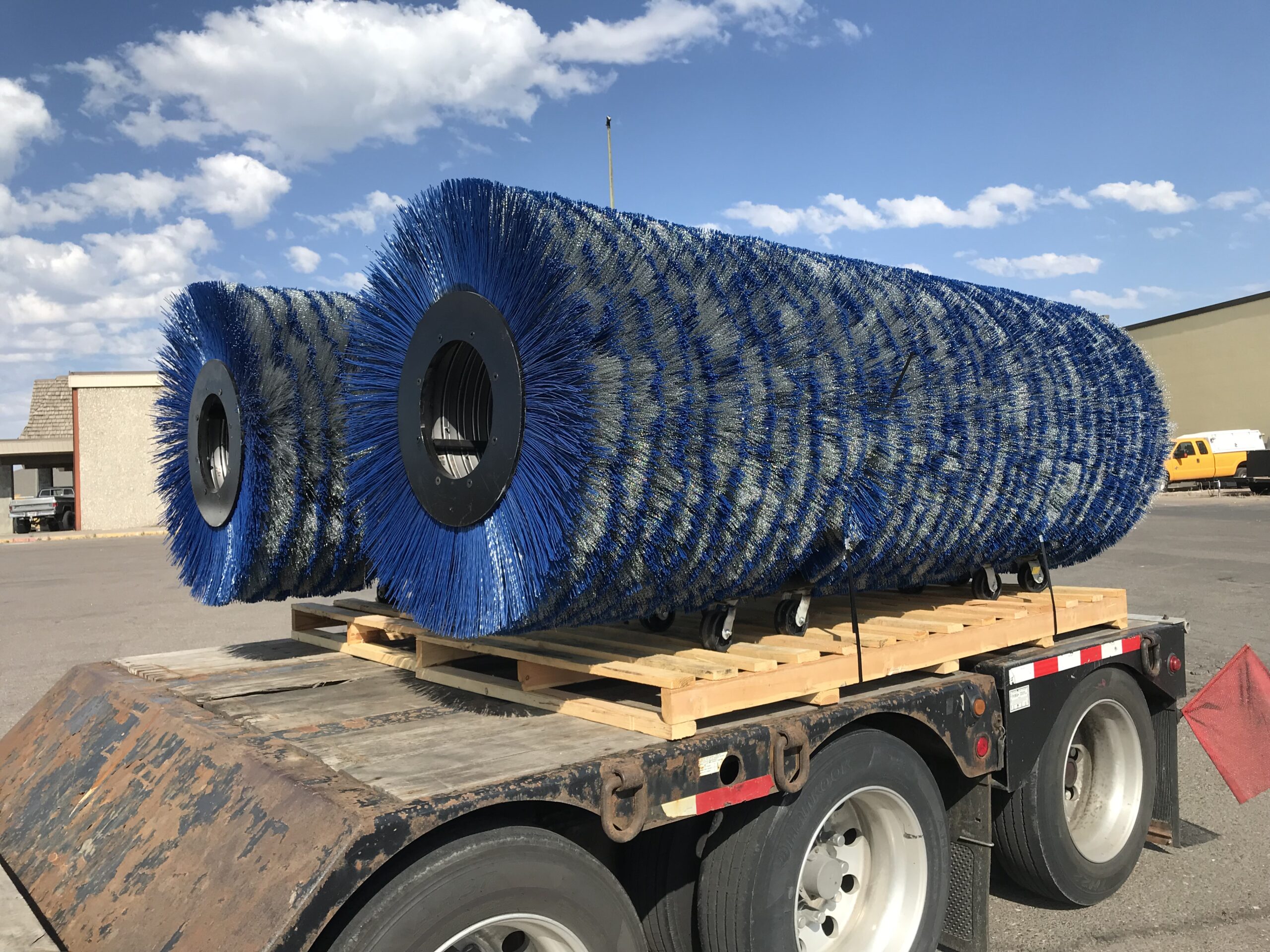 Sweeper brushes loaded for transport
