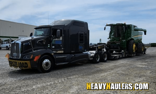 John Deere Combine on a lowboy trailer
