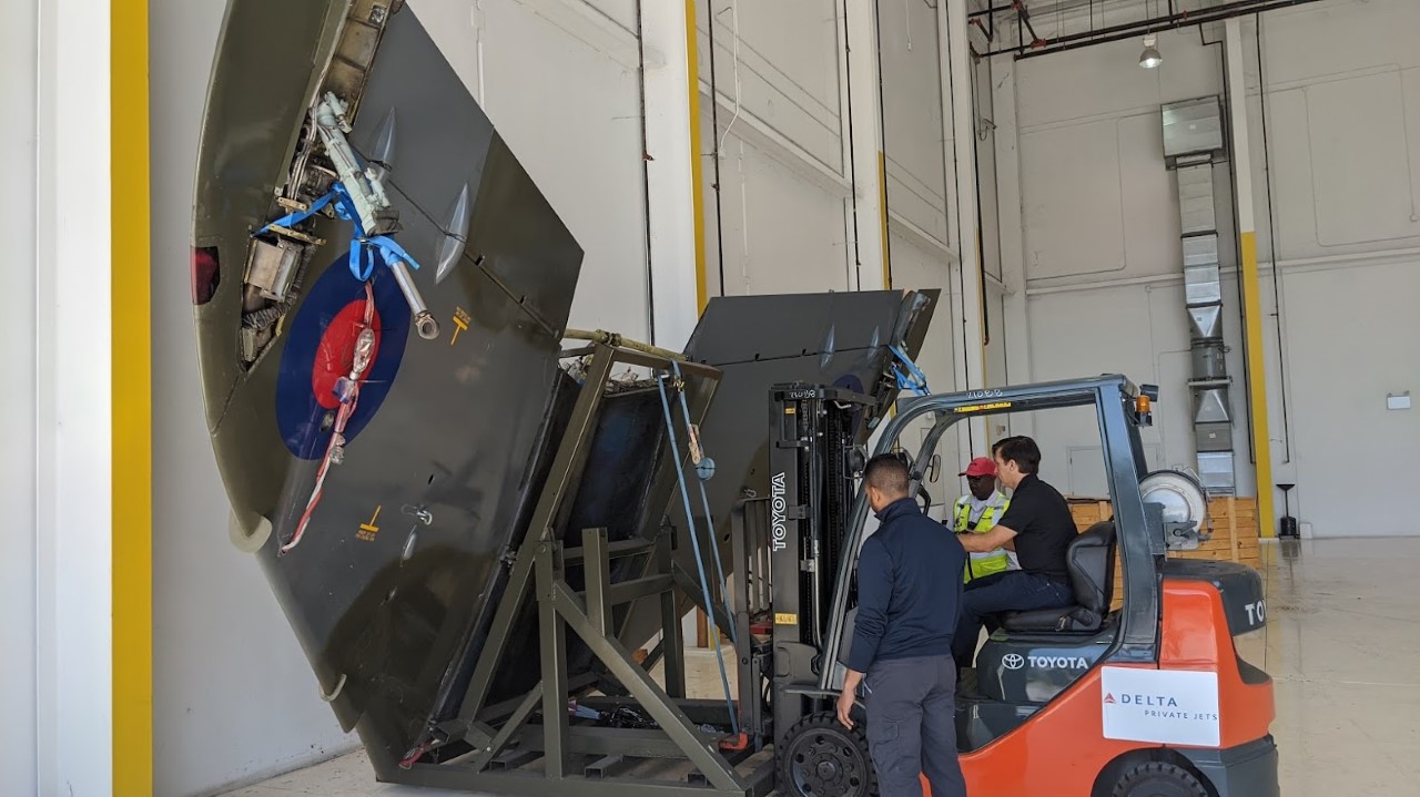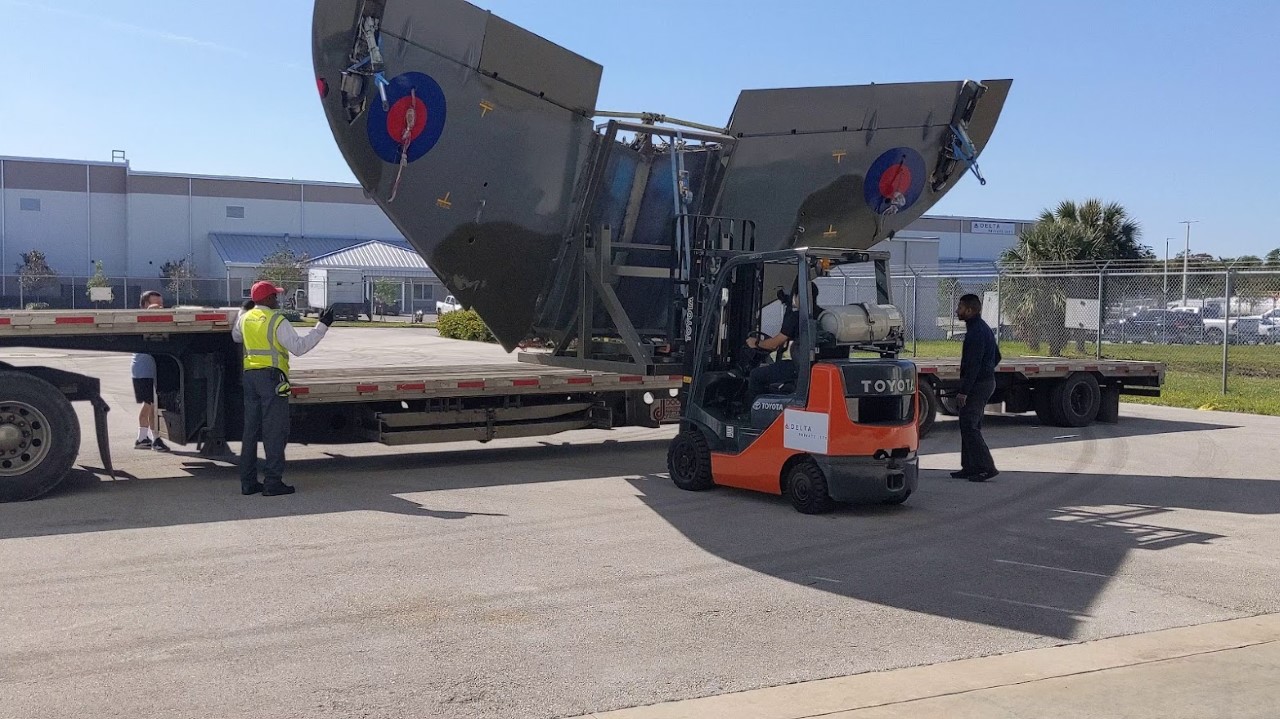 Chad contracted a top-notch driving team with a step-deck trailer that was perfect for the airplane horizontal stabilizer freight. Because of the nature of the load, meaning they couldn’t drive the stabilizer onto the ramp, Chad obtained load assistance. He contracted experienced forklift drivers, who have high safety standards and the skills to safely load the stabilizer on the step deck trailer.