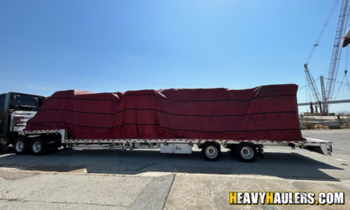 forklift. Once they were on the step deck trailer, he instructed the team to place tarps