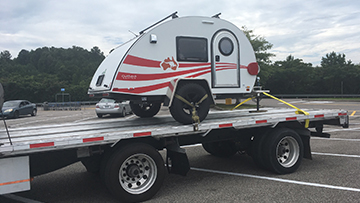 ● Heavy Haulers will examine your teardrop camper and use the best trailer option for your RV transport, likely one of the following options: